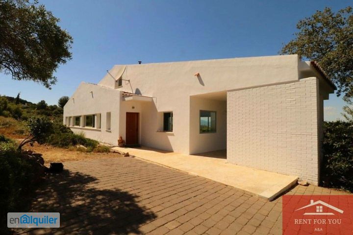 Preciosa casa de estilo minimalista, ubicada junto a la sierra, en un entorno ideal con extraordinarias vistas, para los amantes de la tranquiladad y la naturaleza. El acceso a la vivienda está asfaltado en su totalidad, la finca tiene unos 12.000 metros, aunque sólo se alquila la casa con piscina y zonas de jardín alrededor de ella, de unos 2.500 metros. Cuenta con espacio en hormigón estampado para aparcar varios coches, porche cubierto, piscina en la parte trasera; Interiormente cuenta con grandes ventanales que la dotan de gran luminosidad, se distribuye en un gran salón con chimenea, cocina abierta al salón, un gran pasillo distribuye las 3 habitaciones en planta baja (Una en suite) y los 2 baños (uno con bañera y otro con plato de ducha) en la 1ª planta hay un espacio extra que puede utilizarse como 4ª habitación o despacho a manera de altillo. La vivienda cuenta con calefacción y se alquila sin amueblar. Se acepta alguna mascota de pequeño tamaño. Se solicitan 2 meses de fianza y acreditación de ingresos para gestión de seguro de impagos de alquiler.