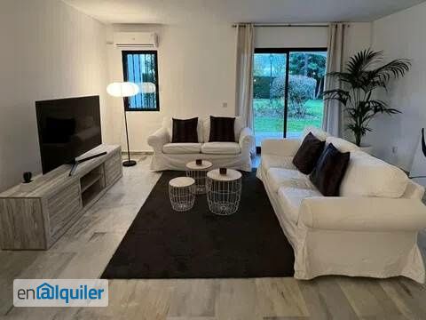 Alquiler larga temporada el chalet - adosado en la urbanización en Andalucía Los Pinos En la primera planta: Cocina totalmente equipada y amueblada, salón - comedor con acenso a la terraza, un aseo En la segunda planta: Tres dormitorios, dos cuartos de baños Plaza de garaje Piscina comunitaria.