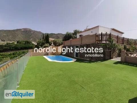 Larga temporada, todo el año Espléndida villa con piscina y terraza privadas rodeadas de naturaleza y tranquilidad. Situada a las afueras de Frigiliana. Considerado uno de los pueblos más bonitos de España.  A poca distancia de Frigiliana (15 minutos caminando), a 5 minutos en coche, a 15 minutos de Nerja. Descubre su encanto rústico y disfruta de un hogar único. Estamos ante una propiedad de larga temporada ideal por su localización y características.  De fácil acceso. Espacio para aparcar varios vehículos al aire libre.  La villa consta de tres dormitorios. El principal está situado en la segunda planta. Es un dormitorio doble con baño en suite (formato ducha) con acceso directo al solárium con vistas lejanas al mar. Rodeado de la Sierra de Almijara.Dos habitaciones con armarios empotrados situados en la planta baja junto a un baño equipado con ducha.  Además, en la planta baja encontrarás una fabulosa cocina totalmente equipada de estilo abierto. Comunica directamente con el salón-comedor con chimenea. Estamos ante una espacio muy luminoso y acogedor.  Desde el salón puedes acceder a la terraza principal de la villa. Disfruta de una piscina privada con vistas. Sumérgete en un ambiente tranquilo y silencioso.  Bajo la piscina encontrarás un pequeño espacio para cultivar. Crea tu propio huerto rodeado de árboles frutales.   Información adicional:  Hay que demostrar justificante de ingresos Alquiler sin amueblar Mascotas bajo petición 2 meses de fianza Gastos de electricidad, internet y agua a parte   Frigiliana es uno de los denominados ?pueblos blancos? con más encanto de España. Situada en la provincia de Málaga. El casco histórico de Frigiliana se caracteriza por el suelo empedrado que conforma sus calles y por su decoración floral. La Sierra de Almijara se puede apreciar con detalle desde cualquier lugar del pueblo. Por ello, una parada en los miradores de Frigiliana es inevitable. Famoso por el Festival de Tres Culturas en el que se reviven las costumbres y los espectáculos de las culturas cristina, judía y árabe; por la fabricación de la deliciosa miel de caña y por sus cultivos de aguacate. Los puntos de interés turístico propios de Frigiliana son el Palacio de los Condes y su Iglesia. Además, las calles Zacatín, Alta y Santo Cristo son el mejor ejemplo visual del encanto único propio de la localidad. Sin duda alguna, la esencia de Frigiliana es puramente rústica, lo que le hace ser un pueblo especialmente acogedor. Por último, próximos a Frigiliana se encuentran la localidad de Nerja y una antigua aldea denominada El Azebuchal. Ambas paradas obligatorias para turistas y residentes.