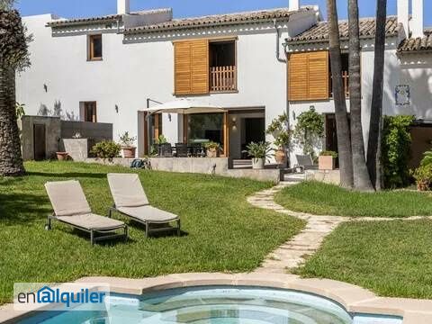 En una de las mejores zonas de Mallorca la zona de Establiments, nos encontramos con una preciosa casa rustica pareada del 1.900, en un terreno de 9.400m2 con pozo de vena. La casa amueblada con una reforma integral muy moderna, tiene una piscina, jardín, zona de huerto y espacio para caballos con cuadras, comunitario con la casa de al lado. Se divide en dos plantas con un espectacular hall de entrada con doble altura, salón comedor con chimenea que da también a la zona de cocina y con salida a preciosa terraza de unos 90m2 en dos niveles con jacuzzy, cocina de alta gama con todas las encimeras de Corian y electrodomésticos encastrados, espectacular barra con espacio para comer y salida a la terraza y jardín, un dormitorio muy espacioso con baño en suite y zona de lavadero, cuarto de maquinas y bodega. En la parte superior tenemos un espacio de despacho, y dos habitaciones dobles una de ellas con baño en suite y vestidor y la principal espectacular de amplia con zona de vestidor, baño en suite y baño turco. De uso exclusivo de la casa esta la zona de barbacoa tipo porche con cocina exterior, horno de leña, aseo y ducha, ideal para reuniones con los amigos en la época de primavera verano. Toda la casa tiene suelos de madera de roble, cemento pulido en baños y cocina, pozo de vena, focos empotrados alta gama, climalit en ventanas, aire frio calor por conductos y calefacción central por radiadores y gasoil, en la zona de entrada hay espacio para aparcar los coches. No se pierda esta maravilla situada en un enclave único lleno de tranquilidad y paz.Los gastos de luz, agua y basuras, van aparte del alquiler y hay 300? adicionales de jardinería y mantenimiento de piscina al mes. Se piden dos meses de fianza y mes corriente. Nominas y referencias y contratos de trabajo fijos. No se lo piense mas y venga a visitarla se quedara maravillado y nosotros se la enseñaremos encantados.