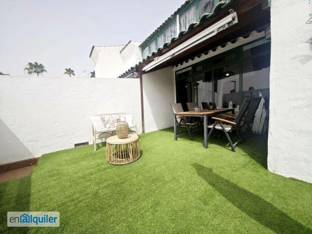 DISPONIBLE SOLO POR TEMPORADAS. DISPONIBLE A PARTIR DE SEPTIEMBRE 2026. (MÍNIMO TRES MESES). NO DISPONIBLE COMO VIVIENDA HABITUAL. NO LARGA DURACIÓN . Desde Nordicway ponemos a disposición de nuestros clientes este moderno dúplex adosado en una de las zonas más privilegiadas del sur de la isla, Sonnenland. Ubicado en un complejo moderno con piscinas comunitarias y zonas ajardinadas, se encuentra a poca distancia de la autopista GC-1, de la Playa de Maspalomas y de lugares emblemáticos como las Dunas y el Faro de Maspalomas. El dúplex es moderno, está completamente amueblado, ha sido renovado recientemente y está listo para entrar a vivir. Es muy luminoso, con ventanas al exterior, y destacan su terraza y la amplitud del interior. Asimismo, desde la planta alta se pueden disfrutar vistas panorámicas al mar Atlántico. La propiedad se distribuye en dos plantas. Planta baja: Tenemos una terraza aproximadamente (12m2), un salón, una cocina, y un aseo con lavadora. Planta alta: Se encuentra el dormitorio, un pequeño cuarto de estudio y el baño. En cuanto entramos en la propiedad, nos encontramos con una amplia terraza, que dispone de césped artificial y mobiliario de exterior, donde poder disfrutar plenamente de este espacio privativo al aire libre. Una vez dentro de la vivienda, nos encontramos con un pequeño espacio a modo de recibidor, donde hay un armario con cajones para almacenaje y un frigorífico grande, situado junto a la cocina, que se encuentra a mano derecha de forma independiente. Se trata de una cocina totalmente amueblada y equipada con todos los electrodomésticos (incluido lavavajillas). Desde la cocina, tenemos acceso a un pequeño aseo, donde también se encuentra la lavadora. Desde el recibidor, justo enfrente, se ubica el salón; al fondo encontramos un cómodo sofá cama tipo chaise longue con una pequeña mesa de centro. A mano izquierda, hay muebles con estanterías y cajones, y a mano derecha, la televisión empotrada en la pared. Desde el salón, en una esquina a la derecha, se encuentra la escalera que conecta con la planta superior. En la segunda planta se encuentran la habitación y el baño. La habitación dispone de una cama doble de matrimonio grande, mesitas de noche y un armario empotrado. La distribución de este dormitorio es diferente a la habitual, ya que desde él se accede a una estancia adicional que puede utilizarse como despacho, estudio o incluso como cuarto de invitados, puesto que cuenta con un sofá cama. Este espacio dispone de amplios ventanales que aportan gran luminosidad a toda la estancia, incluido el dormitorio. Asimismo, desde esta estancia se accede mediante unas escaleras a un pequeño espacio con techo abuhardillado, ideal para almacenamiento. El baño es moderno y cuenta con plato de ducha (doble ducha), aseo y lavabo, revestido y decorado con gran cuidado. - Dormitorio y salón con aire acondicionado. - Tv Satélite con canales extranjeros - Plaza de aparcamiento asignado El complejo dispone de zonas ajardinadas, piscinas, parque infantil, y plaza de parking asignado. Precio: 1.300,00 al mes, con internet y una plaza de aparcamiento exterior incluidos. Gastos de agua y luz incluidos hasta un límite conjunto de 60 /mes. Condiciones: Se requiere solvencia económica, un mes de fianza, mes corriente y una mensualidad en concepto de honorarios profesionales + 7% IGIC. Nº Asignación al Registro Único de Alquiler: ESFCTU0000350120002219160000000000000VV-35-1-00251301 Los datos expuestos son meramente informativos y se encuentran sujetos a errores u omisiones involuntarias. Para más información, no duden en contactar con nosotros.