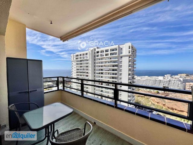 Presentamos en ALQUILER, esta propiedad ubicada en Playa Paraíso, en el edificio Club Paraíso, con vistas increíbles al Océano, silencio y una ubicación excelente a pocos minutos caminando de la playa de Las Galgas y el paseo marítimo. El complejo está ubicado en la Av de Adeje 300, y tiene una amplia  piscina comunitaria. Zonas comunes y zona de parking común sin plaza asignada, quien llega aparca. Es una novena planta distribuida asi: -dormitorio, con ventana, una cama doble y un armario empotrado. Zona con mesa de trabajo. La habitación es espaciosa y muy luminosa. - el baño, con el inodoro separado en un cuarto y el baño independiente con amplio mueble con espejo y lavabo y una ducha cómoda y a nivel del suelo.  salón comedor en una amplia estancia, con puertas correderas de cristal con salida a la terraza, luminosidad y bien insonorizada. -La cocina es abierta pero con suficiente espacio y una barra americana que la separa del salón, tiene los electrodomésticos necesarios, es espaciosa  funcional. - terraza, amplia y con privacidad, tiene unas vistas increíbles al Océano y al ser una planta alta no tiene nada de ruido. El piso es cómodo, amplio y funcional. Se requiere aportar: 1 mes de FIANZA La mensualidad para entrar a vivir 1100 del seguro del primer año de protección de pagos Se requiere documentación  para demostrar ingresos.  Gastos agua y luz los paga el inquilino aparte Se ofrece : entrada INMEDIATA amueblado como se ve en fotos y en la visita Contrato alquiler LARGA ESTANCIA con posibilidad de empadronamiento como vivienda habitual Interesados solicitar visita, por favor abstenerse personas que no cumplan los requisitos solicitados.