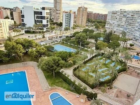 FANTÁSTICO APARTAMENTO CON TERRAZA, de 3 dormitorios y 1 baño, en el edificio club del mar, Playa de San Juan, en urbanización cerrada y vigilada, con zonas ajardinadas, parque infantil, piscina olímpica, pista multiusos, mini golf, pista patinaje, parking para coches, etc, etc. Con playa a 500 metros. Cerca de todo tipo de servicios, al lado de paradas de autobús y tram. Con puerta de acceso a Mercadona por la urbanización. Alquiler corta estancia, disponible desde el 1 Mayo hasta 30 de Septiembre. Preguntar disponibilidad y precios. NO ADMITE MASCOTAS.