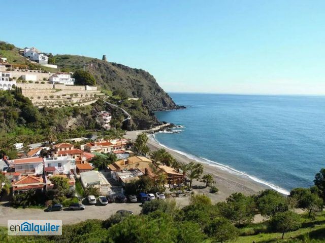 En la misma playa de Cabria, con varios chiringuitos en la playa, zona de hamacas, etc, a cinco minutos en coche del centro de Almuñecar, a cinco minutos del nudo de la autovía que nos lleva a Granada capital en 40 minutos y a Málaga, capital de la costa del sol, en 50 minutos. A escasos 50 metros del agua, se encuentra esta casa formada por dos apartamentos independientes, de 2 dormitorios y 1 baño cada uno, para cuatro personas, aire acondicionado y terraza. El de la planta alta con dos terrazas y vistas al mar. Zona de aparcamiento privado. Se pueden alquilar los dos apartamentos juntos o por separado. Disponible en alquiler sólo de Septiembre a Junio 2025.