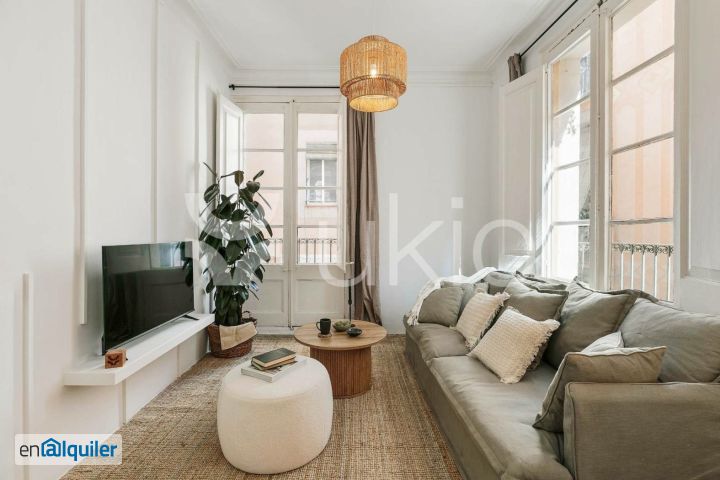 *COMPLETAMENTE AMUEBLADO* *ALQUILERES MENSUALES DE 1 A 11 MESES* Descubra la esencia de la vida barcelonesa en Pano, un encantador apartamento de 63 metros cuadrados situado en Sant Pere, Santa Caterina i la Ribera. Esta ubicación le sitúa justo en el centro del vibrante casco antiguo de Barcelona. Sumérjase en la serenidad costera y el confort moderno de este refugio urbano, donde cada detalle está cuidadosamente estudiado para proporcionarle una estancia inolvidable. Pano cuenta con dos habitaciones muy bien decoradas, cada una con una cómoda cama de matrimonio, lo que garantiza una noche de descanso tranquilo. Uno de los dormitorios cuenta con una estación de trabajo dedicada y acceso al balcón, proporcionando un espacio ideal para trabajar o relajarse. El cuarto de baño es elegante y cuenta con una ducha a ras de suelo. Relájese en la acogedora sala de estar, diseñada con buen gusto con un tema inspirado en la playa, caracterizado por relajantes neutros costeros y complementado con alfombras tejidas y accesorios de iluminación. Relájese con el sistema de entretenimiento o salga al encantador balcón francés y disfrute de la vibrante energía del barrio. Prepare deliciosas comidas en la cocina totalmente amueblada, equipada con todo lo esencial para sus necesidades culinarias. El comedor adyacente, con una elegante mesa, es el lugar perfecto para comidas compartidas y reuniones sociales, y ofrece una combinación perfecta de funcionalidad y comodidad. Disfrute de la máxima comodidad con aire acondicionado en todas las habitaciones, garantizando un ambiente agradable durante toda su estancia. Totalmente amueblado, este apartamento viene con todo lo necesario, incluyendo ropa de cama y ropa de cama. *Los precios y la disponibilidad pueden variar según la duración de la estancia y la antelación de la reserva. Los servicios públicos y los gastos por mascotas no están incluidos en el precio del alquiler, todo se detallará en el contrato final. *El mobiliario y la decoración pueden diferir ligeramente de las fotos debido a mantenimiento y mejoras de calidad por nuestro equipo de diseño. *Para consultar precios actualizados, disponibilidad y todos los detalles del apartamento, visita nuestra web. Para cualquier duda, consulte con un agente de ventas. *El precio indicado se aplica únicamente a estancias destinadas exclusivamente a fines vacacionales, recreativos o de ocio.