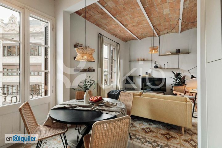 * COMPLETAMENTE AMUEBLADO* * ALQUILER MENSUAL DE 1 A 11 MESES* Este tradicional apartamento de Barcelona de 76 metros cuadrados en Gràcia recibe un cambio de imagen moderno. El piso, de 2 dormitorios y 1 baño, tiene 3 balcones, que proporcionan luz natural a todo el piso. Uno de ellos, junto a la sala de estar, está amueblado con un conjunto de una mesa y dos tumbonas para que se sienta aún más como en casa. La decoración única y el diseño moderno crean un espacio elegante que se mezcla con las coloridas baldosas del suelo y los techos abovedados. Los dos dormitorios tienen cada uno su propio balcón francés privado. Ambos están equipados con camas de matrimonio y ropa de cama nueva. La cocina americana está totalmente equipada con todos los utensilios y electrodomésticos. La zona está equipada con una mesa de comedor redonda y una zona de estar con un sofá. Hay un cuarto de baño completo con ducha y toallas limpias. Para el máximo confort, este piso está equipado con aire acondicionado por conductos y sistema de calefacción en todas las habitaciones. *Los precios y la disponibilidad pueden variar según la duración de la estancia y la antelación de la reserva. Los servicios públicos y los gastos por mascotas no están incluidos en el precio del alquiler, todo se detallará en el contrato final. *El mobiliario y la decoración pueden diferir ligeramente de las fotos debido a mantenimiento y mejoras de calidad por nuestro equipo de diseño. *Para consultar precios actualizados, disponibilidad y todos los detalles del apartamento, visita nuestra web. Para cualquier duda, consulte con un agente de ventas. *El precio indicado se aplica únicamente a estancias destinadas exclusivamente a fines vacacionales, recreativos o de ocio.