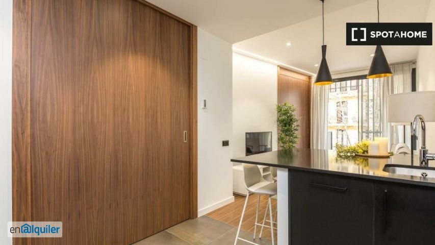 Amplio apartamento de un dormitorio ubicado en una de las mejores zonas de Barcelona. El apartamento tiene una distribución de 50 m2 y dispone de todo lo necesario para disfrutar de su estancia. Encontrarás el dormitorio principal equipado con cama de matrimonio y armario para que disfrutes al máximo de tu estancia. El resto del apartamento dispone de salón con sofá, TV de pantalla plana, wifi gratis, aire acondicionado, calefacción y una cocina moderna e integrada que contiene todo el equipamiento necesario para tu estancia. (microondas, horno, estufa, y más). Además, dispone de un baño completo con plato de ducha.
