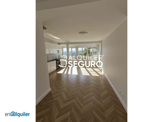 Piso de 80m2 reformado con 2 habitaciones, salón con cocina americana, 2 baños (1 en suite), terraza cerrada, suelos de parquet, exterior y sin amueblar. Gastos de comunidad, garaje y agua incluidos en el precio. Finca con ascensor. Zona residencial con todos los servicios. No se admiten animales.