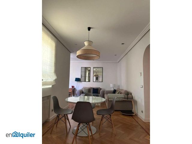 DIZA Consultores presenta magnífico piso de dos dormitorios en una de las zonas más exclusivas de Madrid, perfecto para quienes buscan una combinación de confort, luminosidad y ubicación privilegiada. Este encantador piso, situado en una finca señorial del Barrio de Salamanca, cuenta con una superficie de 87 m² y ha sido diseñado para maximizar el espacio y la funcionalidad. El piso da a un tranquilo patio de manzana, lo que garantiza una tranquilidad inusual para la zona y una gran cantidad de luz natural durante todo el día. Amplio salón-comedor: Un espacio abierto y acogedor, ideal para relajarse o recibir visitas. La abundante luz natural y la decoración elegante crean un ambiente cálido y confortable. Ambos dormitorios son amplios y cuentan con armarios empotrados de gran capacidad, proporcionando un excelente almacenamiento. La decoración neutra y moderna permite una personalización fácil y rápida del espacio. La cocina está totalmente equipada con electrodomésticos de alta gama, incluidos nevera, horno, microondas, lavavajillas y lavadora. Su diseño práctico y funcional facilita el uso diario y cuenta con suficiente espacio de almacenamiento para mantener todo en orden. El baño cuenta con un diseño moderno y elegante. Dispone de ducha con mampara, lavabo con mueble para almacenamiento y un gran espejo iluminado. El piso se alquila completamente amueblado con muebles de alta calidad, listo para entrar a vivir. Todo ha sido seleccionado cuidadosamente para maximizar la comodidad y el estilo. El inmueble incluye sistema de calefacción central y aire acondicionado para asegurar el máximo confort en cualquier época del año. Ubicado en el Barrio de Salamanca, este piso se encuentra en una de las zonas más codiciadas de Madrid. A pocos minutos a pie de la calle Serrano y el Parque del Retiro, estarás rodeado de las mejores tiendas, restaurantes, y todos los servicios necesarios como supermercados, farmacias y colegios. Excelentes conexiones de transporte público con varias líneas de metro y autobuses cercanos que te conectan con el resto de la ciudad. Si quieres conocer más inmuebles como este entra en dizaconsultores.com Convertimos Sueños en Hogares.