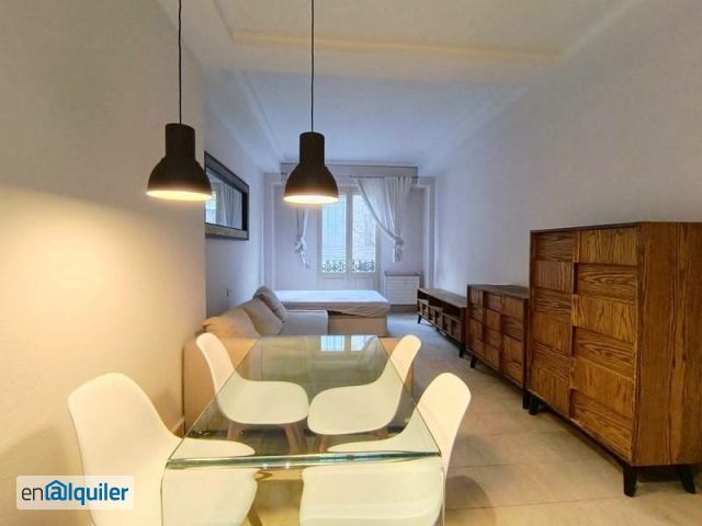 Estudio EXTERIOR, muy luminoso Se alquila este bonito y coqueto estudio en pleno Barrio Goya. Es una segunda planta (con altura prácticamente de 3ra), con vistas a la calle Don Ramón de la Cruz a metros de Conde de Peñalver. Zona muy comercial con todos los servicios disponibles, supermercados, las mejores tiendas de moda, hospitales, gimnasios, bares y zonas de ocio, a 10 minutos del Parque del Retiro. Perfectamente comunicado por transporte público, ya sea autobús o metro, un barrio perfecto para disfrutar de Madrid! Estamos ante un estudio en buen estado, exterior, con un mini balcón a la calle. Cuenta con una pequeña cocina americana equipada, baño completo con bañera y salón con un gran sofá/cama Cheslong, y mesa comedor para 4 comensales. Luego una bonita estantería separa la zona de descanso, con cama de matrimonio y cómodo y aprovechable canapé. Ventana climalit desde el suelo al techo que da paso al pequeño balcón exterior. Calefacción individual y A.A mediante splite Piso para una sola persona!!!! Es una finca moderna, de los años 90`con portero físico. La finca cuenta en la entreplanta con una zona de lavado y secado a disponibilidad de los inquilinos para la mayor comodidad posible. Solvencia demostrable!