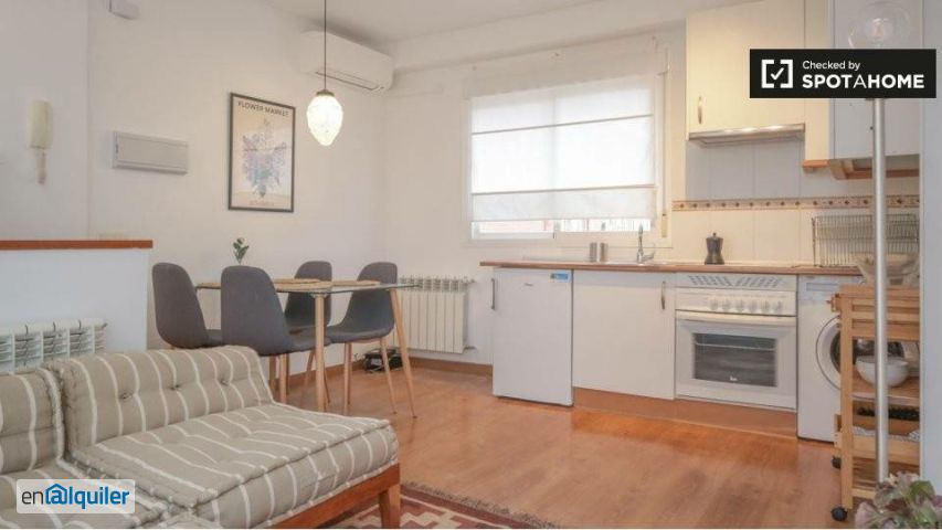 Bienvenido a este encantador apartamento de 1 dormitorio ubicado en San Diego, Madrid. Esta propiedad está completamente amueblada y cuenta con aire acondicionado individual, calefacción de gas natural, lavadora privada y una cocina bien equipada con horno. El apartamento es exterior y cuenta con un balcón para su disfrute. Está disponible exclusivamente para trabajadores y estudiantes de posgrado, perfecto para profesionales solteros o parejas. Los gastos (agua, luz, gas y wifi) están incluidos dentro de un límite, y Spotahome ha verificado personalmente este apartamento para garantizar su fiabilidad y confianza. San Diego es un barrio vibrante de Madrid, con una gran variedad de atracciones cercanas. Para comer, opciones como Punta Cana Madrid y Cervecería Cafetería Loli están cerca. Para quienes buscan sabores latinoamericanos, Imperio Andino y el Restaurante Peruano 'Manos Chiclayanas' están cerca. La atracción turística Dragón de Argente también está a poca distancia, lo que añade encanto a la zona. ¡Reserva tu próximo hogar con Spotahome hoy mismo!