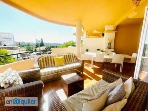 Alquiler larga temporada el duplex en la urbanización Señorio de Aloha En la primera planta: Cocina totalmente equipada y amueblada, salón - comedor con acceso a la terraza, un aseo En la segunda planta: Tres dormitorios, dos cuartos de baños Plaza de garaje Piscina comunitaria.