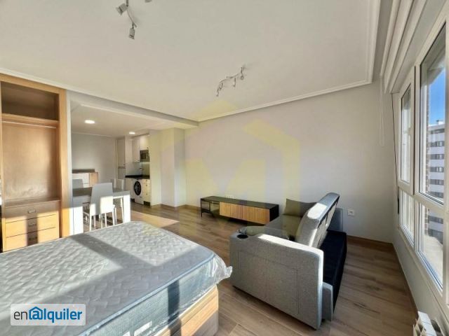 Avda. de Lisboa. Estudio todo exterior, en planta 6ª totalmente reformado. Mobiliario y electrodomésticos a estrenar. Distribuido en cocina-salón-dormitorio y baño independiente con ducha. Dos armarios empotrados. Sofá - cama. Servicios individuales eléctricos. Plaza de garaje en sótano 1º . Ascensor directo a garaje. Gastos de comunidad incluidos en renta. No se admiten mascotas. Referencias claras. #ref:P-718