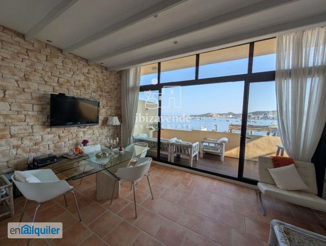 Se alquila desde ya para toda la temporada de verano. Presentamos una auténtica joya inmobiliaria: amplio y luminoso apartamento en Cala de Bou, en primera línea de playa y con vistas panorámicas de 180 al mar y a la Bahía de San Antonio. Un escenario único en toda la isla, ideal para disfrutar de los atardeceres más impresionantes de Ibiza desde tu propia terraza. Este hogar combina ubicación privilegiada, amplitud y confort: 2 dormitorios: el principal con cama de matrimonio, vistas directas al mar y acceso a la terraza; el segundo, integrado en el salón y separado con elegantes puertas correderas de cristal, para mantener luz y vistas.Salón-comedor acogedor con acceso directo a una terraza privada que se asoma a Cala de Bou, Playa Pinet y toda la bahía.Techos altos de 4 metros, aportando una sensación única de amplitud y paz.Piscina comunitaria junto al mar, perfecta para relajarte rodeado de naturaleza y horizonte azul. Detalles que marcan la diferencia: Reformado varias veces, la última en 2024 con mejoras estructurales, carpintería y ventanas climalit, mármol en zona de lavadero y acabados de calidad.Aire acondicionado con bomba de calor en cada habitación.Iluminación ambiental para crear la atmósfera perfecta día y noche.Agua incluida en la comunidad (pozo propio).Fachada recién pintada, gastos ya cubiertos. Este apartamento no es solo una vivienda, es un balcón privado al mar Mediterráneo, con las vistas más exclusivas de Ibiza. Propiedades así rara vez salen al mercado. Contacte con nosotros hoy mismo para más información o concertar una visita y no deje escapar esta oportunidad única de vivir frente al mar.