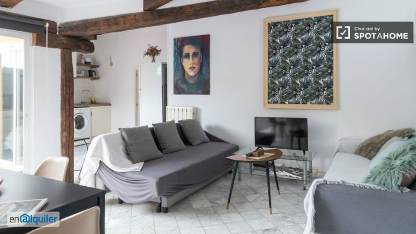 Este encantador apartamento de 1 dormitorio ya está disponible para alquilar en Palacio, Madrid. Está completamente amueblado y cuenta con aire acondicionado frío calor, lavadora, cocina equipada y un balcón ideal para disfrutar del aire libre. Además, todos los gastos (luz, agua y wifi) están incluidos, lo que añade comodidad a tu estancia. No se permite fumar ni se admiten mascotas, y Spotahome ha verificado que la propiedad cumple con los estándares esperados. El apartamento está situado en el barrio de Palacio, rodeado de importantes atracciones. En las inmediaciones, podrás explorar lugares de interés turístico como el Convento de la Latina, la Plaza Tirso de Molina, la Plaza de Cascorro Madrid y la Estatua de Eloy Gonzalo. El vibrante ambiente de esta zona ofrece una variedad de lugares de interés cultural para que disfrutes de una estancia agradable.