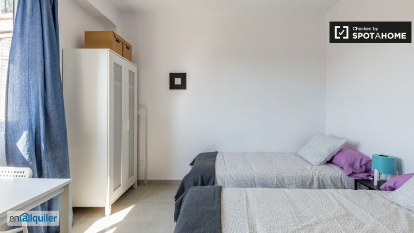 La chispa brillante _porque el estilo simple es muy bueno ahora mismo_ ¿me gustará aquí? Nosotros creemos que sí. Este moderno apartamento es perfecto para los estudiantes. Toma una habitación elegante, en un apartamento amueblado con todo listo y esperándote. ¿de Verdad? Dime más te encantará el aspecto de éste. La decoración minimalista está en este momento, y disfrutarás de paredes blancas, pisos de baldosas y ventanas para que entre mucha luz natural. Pensamos que es ideal para un estudiante. Accede a tus clases en la Universidad de Valencia en autobús. Disfruta de un partido en el estadio Mestalla con tus compañeros de piso el fin de semana. Golpee la playa el domingo. Suena como una buena vida, ¿verdad? Sus 3 razones principales para alquilar aquí: - la cocina da a un patio interior tranquilo. - Camine a la Universitat Politècnica de València en solo 30 minutos. - Tomar el sol en la playa de Platja del Cabanyal. Pero necesitas saber esto - Este es un apartamento en el cuarto piso sin ascensor. También puedes contar tus pasos porque estarás tomando algunos. Su casa-verificador, José, dijo: _ "me encantó esta propiedad. Está en una excelente ubicación con todos los elementos esenciales cerca, incluyendo tiendas y restaurantes ". Ayúdame a decidirme se trata de un luminoso piso 4º, con 3 dormitorios en Carrer de Just Vilar, Valencia. Es moderno y minimalista, con una decoración ordenada y mucha luz natural. Creemos que este apartamento es ideal para un estudiante. Cuando haya terminado de estudiar para el día, diríjase a la playa o vea un partido en el cercano Estadio Mestalla.