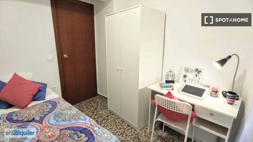 Se alquilan habitaciones en piso amueblado de 5 habitaciones en Carrer d'alcoi. La propiedad está en la planta baja. La propiedad incluye patio privado y televisión inteligente.